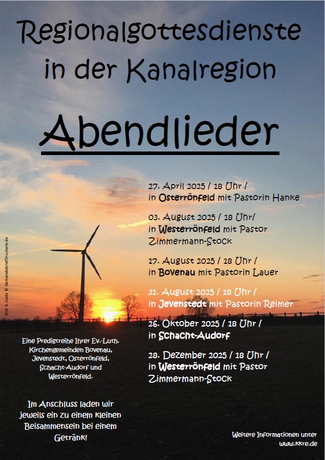 - 31. August 2025 / 18 Uhr / in Jevenstedt mit Pastorin Reimer